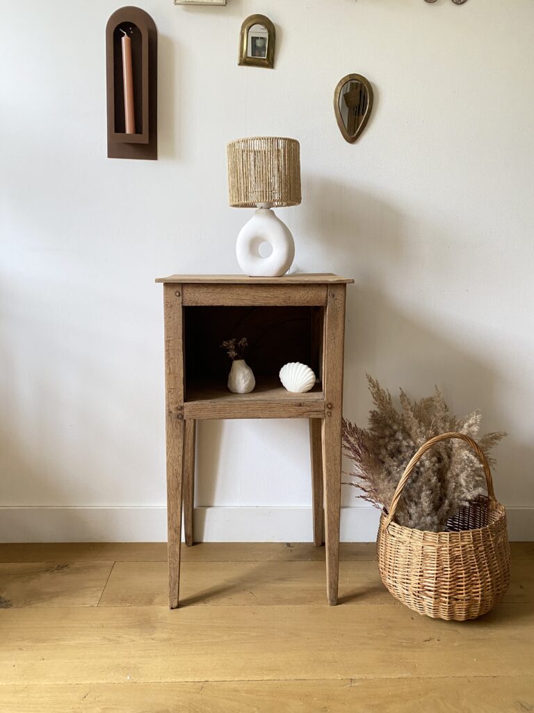 - Une petite table de chevet : Simple et élégante, elle complète parfaitement un intérieur épuré.