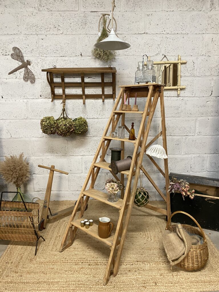 - L’escabeau de peintre : Un incontournable pour ajouter du caractère à un intérieur. Parfait pour atteindre les étagères hautes ou simplement comme élément déco.