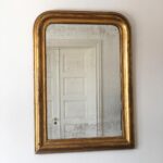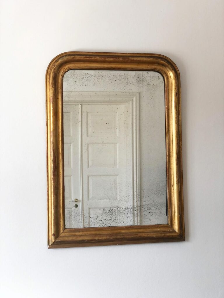 1. Le Miroir Louis-Philippe : Mon préféré pour habiller une cheminée. C’est le chouchou des intérieurs modernes. On le reconnaît à ses angles supérieurs arrondis et sa base droite. Souvent doré à la feuille d’or ou d’argent, il est sobre, élégant et s’adapte partout.