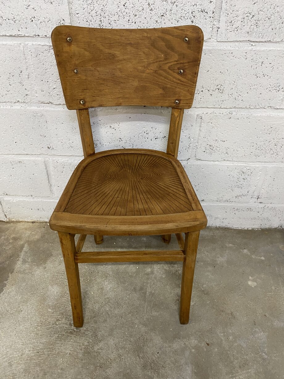 Chaise bistrot avec assise ornée d’un motif à rayures. Elle a été poncée, traitée, teintée et cirée. Chaise solide et stable. À dépareiller autour d’une table comme en décoration dans une chambre (d’autres modèles sont disponibles sur le site).