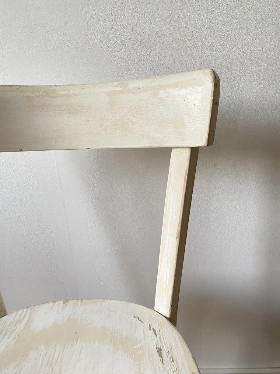 Chaise bistrot patinée. Elle a été poncée et traitée. Chaise solide et stable qui a beaucoup de charme, dépareillée autour d’une table comme en décoration dans une chambre.