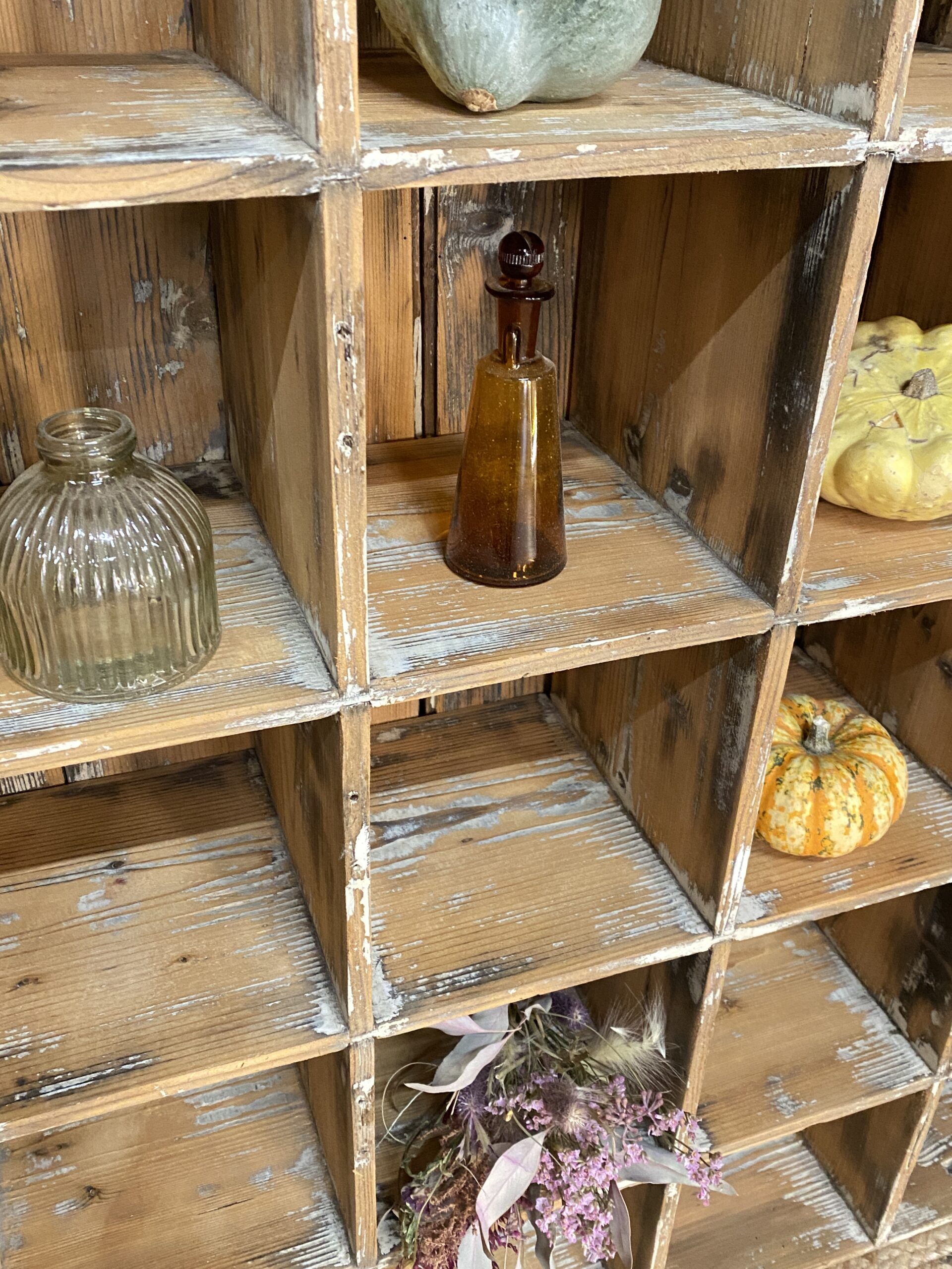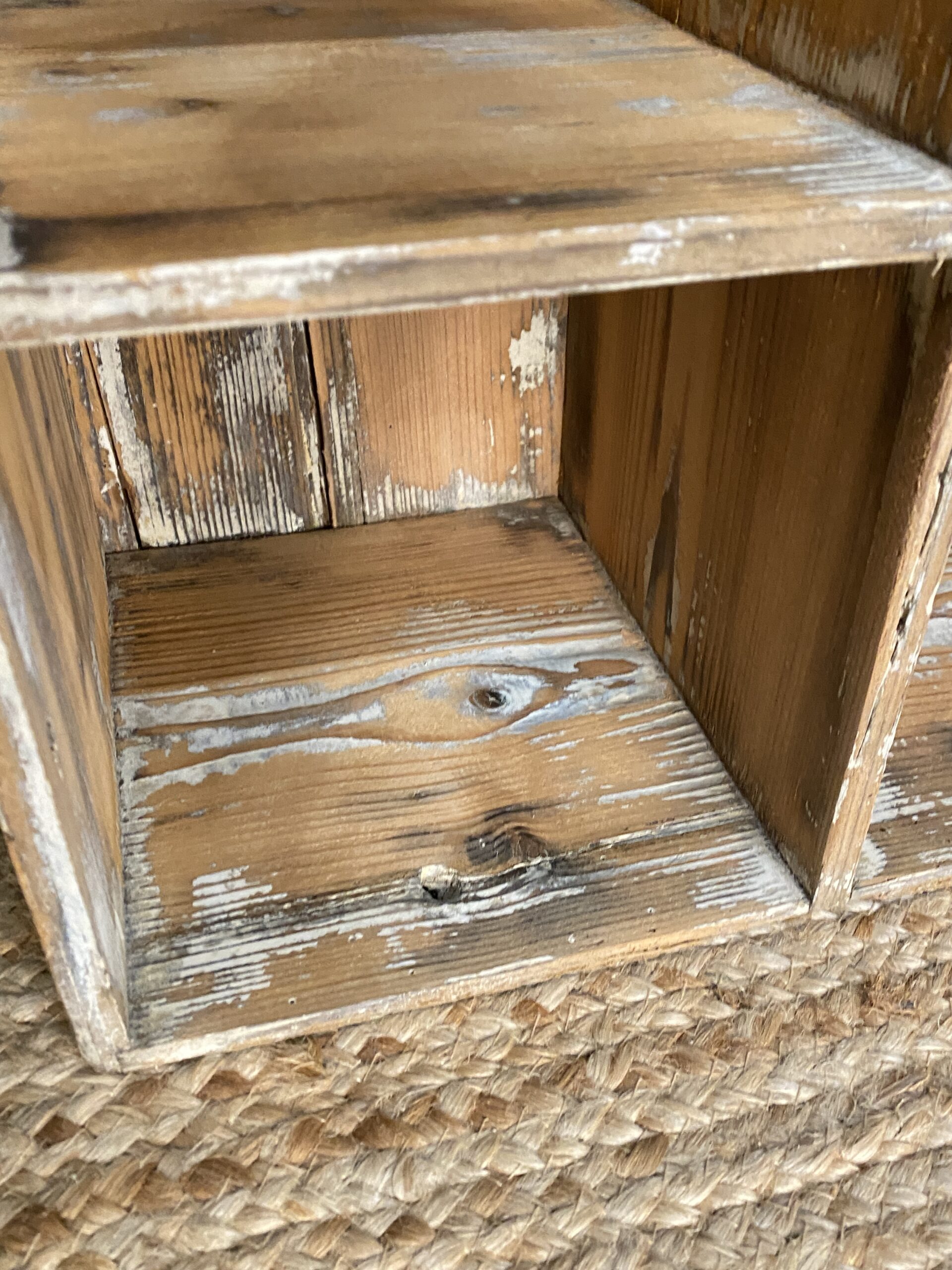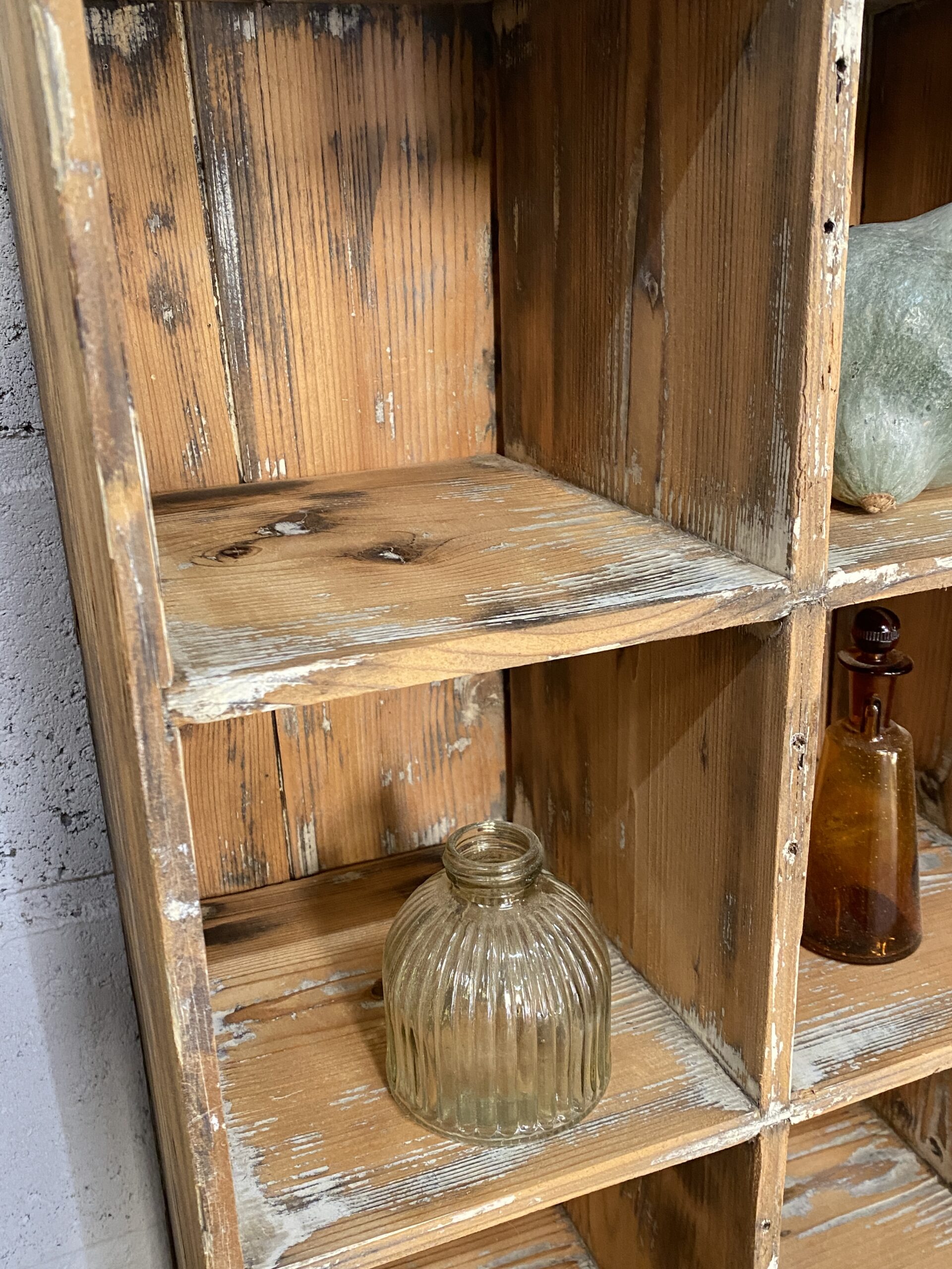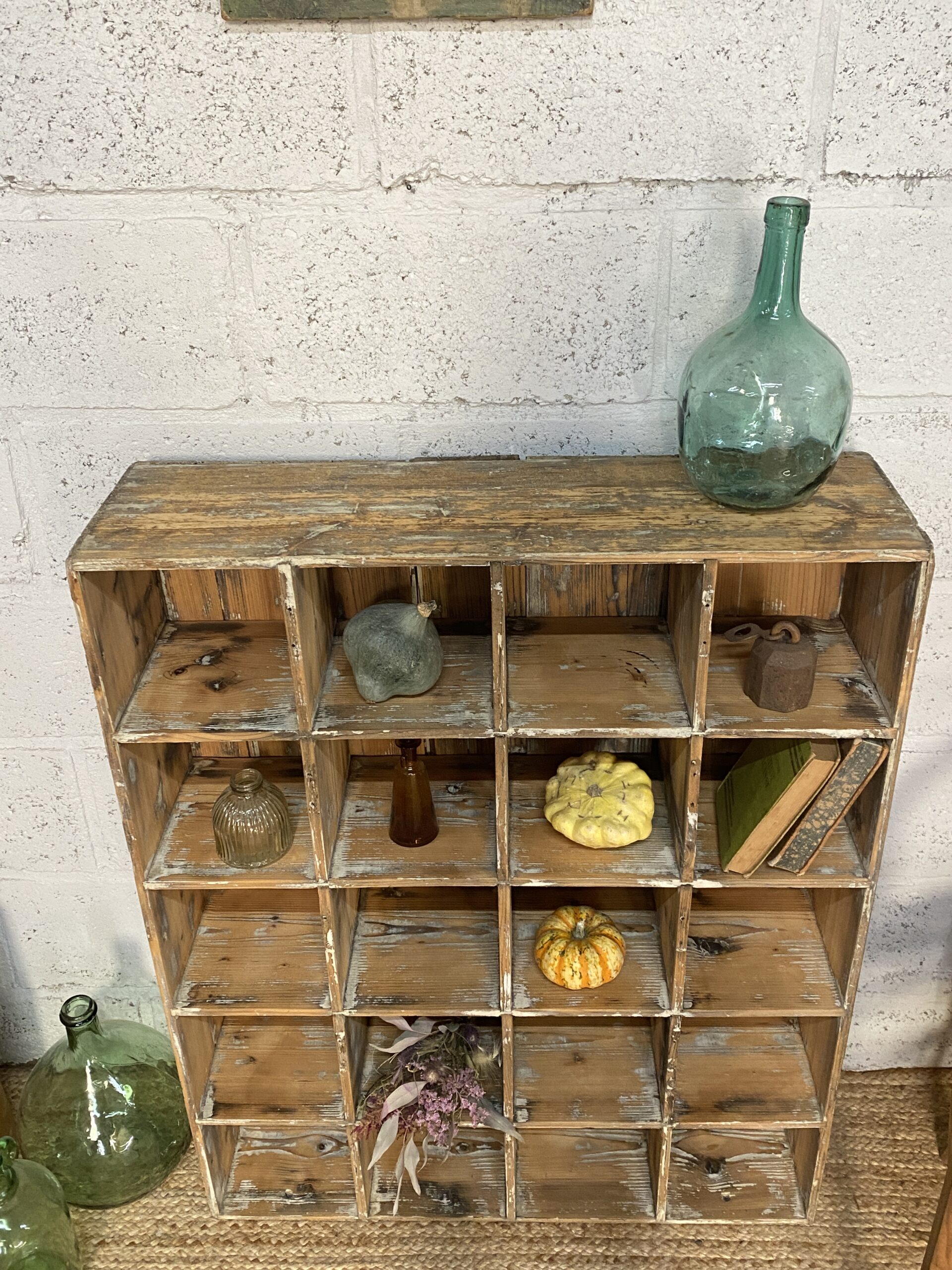 Petit meuble à casiers de garage. Il a été décapé, poncé, lessivé, traité et ciré. Il a un charme fou avec sa patine qui témoigne de son histoire. Parfait pour mettre en valeur votre petite déco, et apporter une touche de caractère à votre intérieur.