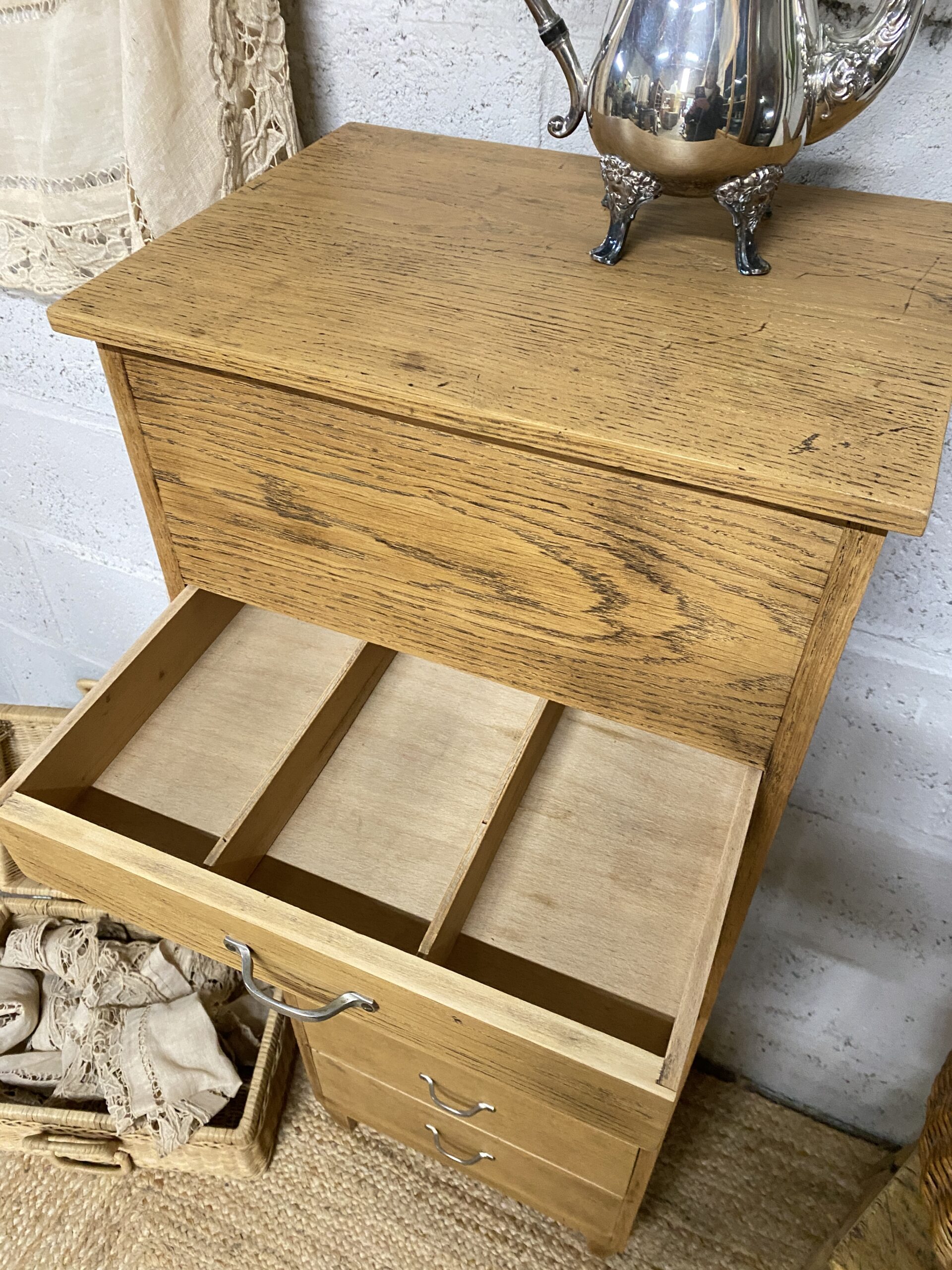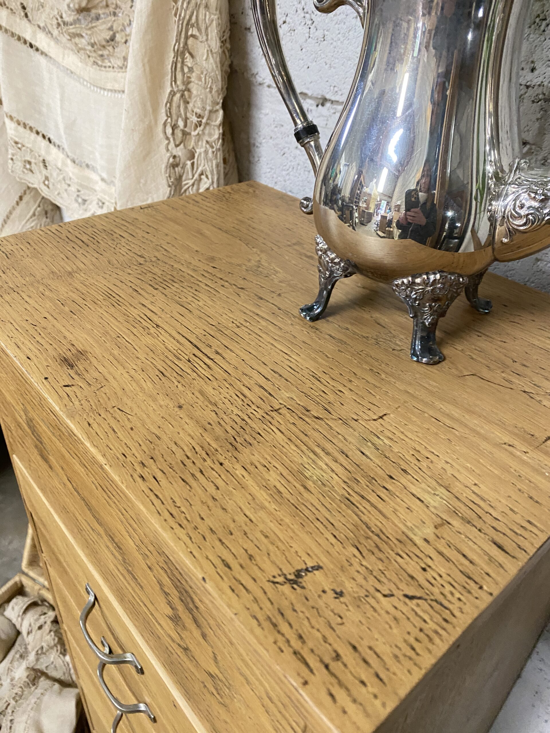 Tous les meubles ou objets proposés sur le site sont chinés et de seconde main. Le temps a donc fait son oeuvre et quelques imperfections peuvent subsister (voir les photos). Malgré les soins qui leur sont apportés, ces petites pépites ne sont pas neuves et comportent parfois des défauts. Merci de votre bienveillance.